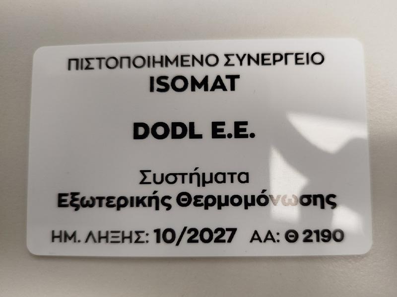 ΠΙΣΤΟΠΟΙΗΜΕΝΟ ΣΥΝΕΡΓΕΙΟ ISOMAT DODL EE ΑΑ: Θ2190 ΣΥΣΤΗΜΑΤΑ ΕΞΩΤΕΡΙΚΗΣ ΘΕΡΜΟΜΟΝΩΣΗΣ